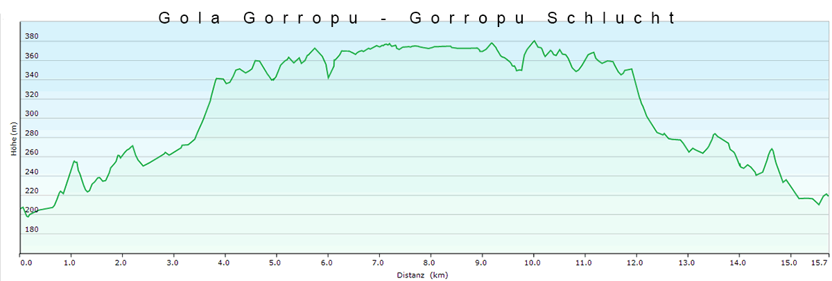 Die Tour lässt sich von einer einfachen Schluchtwanderung bis zu einer ernst zu nehmenden Schluchtenbergtour ausdehnen, ganz nach Geschmack und Können. Die Gorropu Schlucht zählt mit zu Europas schönsten Schluchten und ist der Stolz vieler Sarden. Hier lässt sich die wilde und unverfälschte Schönheit Sardiniens eindrucksvoll erleben. Eingebettet in die atemberaubende und ursprüngliche Landschaft Sardiniens, ist sie für jedermann gut erreichbar und ein durchaus lohnendes Ziel.