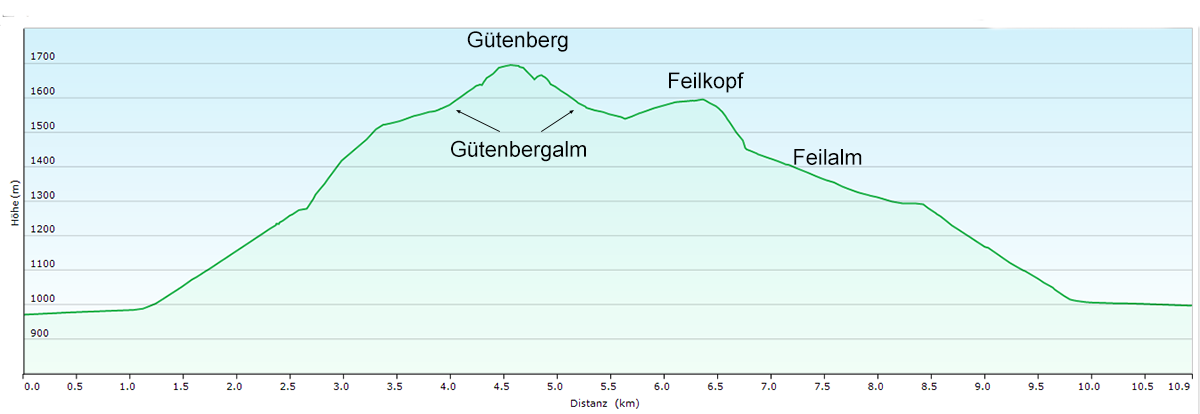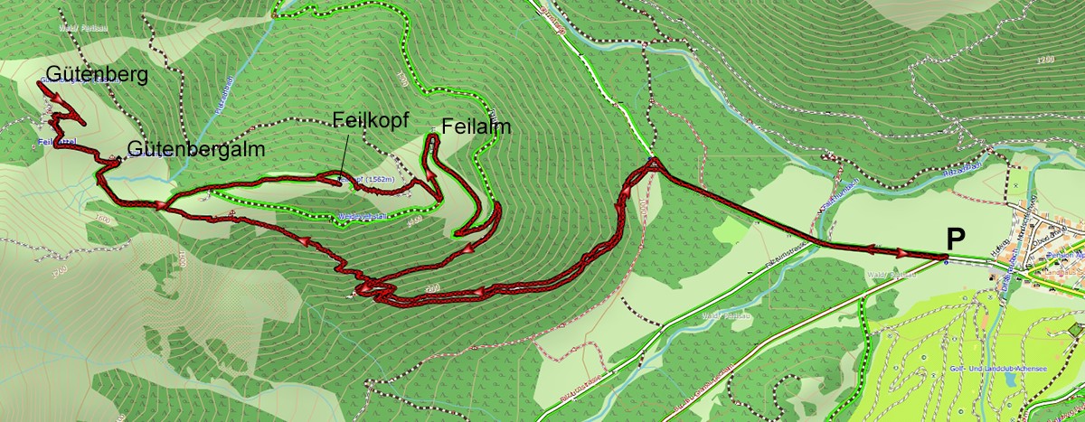 Parkplatz - Pletzachtal - Gütenbergalm - Gütenberg - Feilkopf - Feilalm - Pletzachtal - Parkplatz